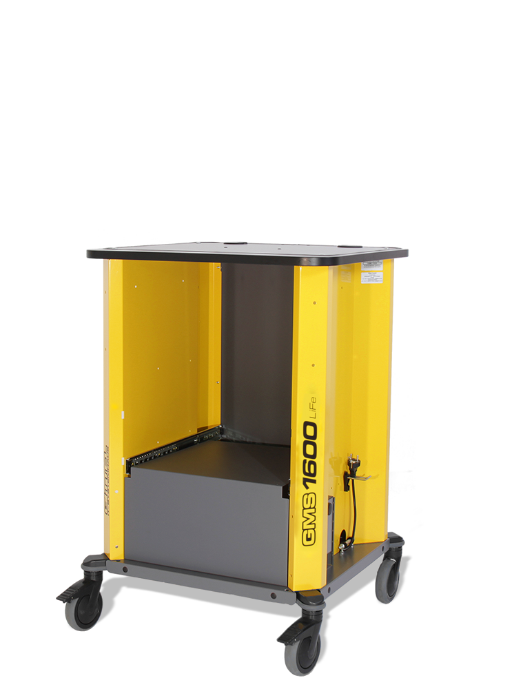 Gele IT-trolley, belastbaar tot 225 kg, met parkeerrem